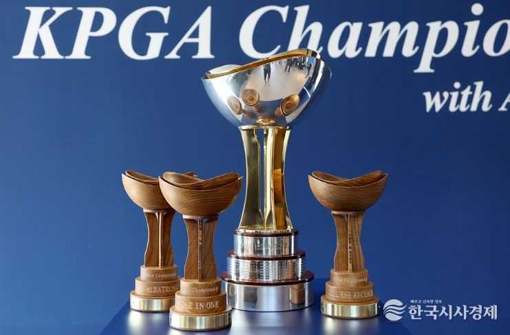 6일 ‘제67회 KPGA 선수권대회 with A-ONE CC’ 1라운드가 열리고 있는 경남 양산 소재 에이원CC 클럽하우스에는 ‘KPGA 선수권대회’의 실제 트로피를 형상화한 ‘목각 트로피’가 있다.