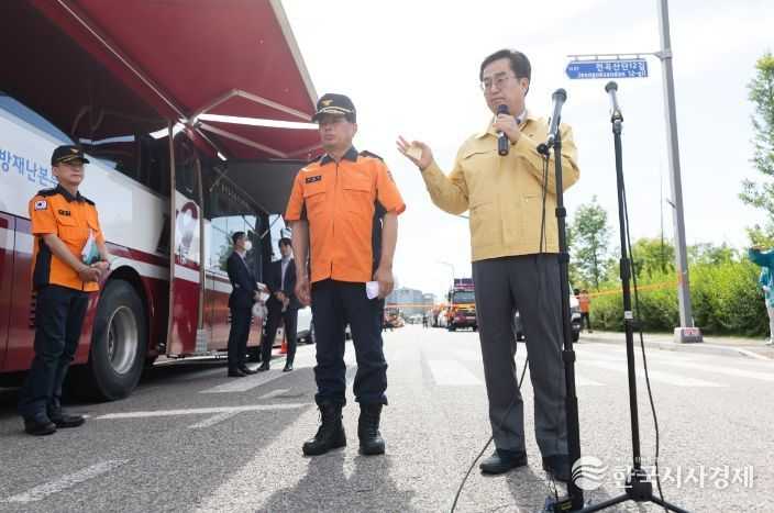 김동연 경기지사는 25일 오후 화재현장에서 브리핑을 갖고 이런 내용을 담은 사고 발생 후 현재까지의 진행 상황에 대해 설명했다.