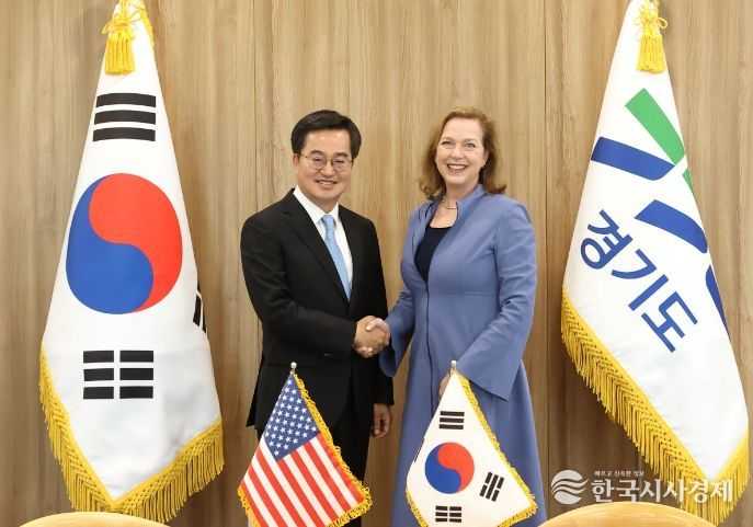 한국시사경제 이정이 기자 | 김동연 경기도지사가 산업안전인증 분야의 세계적 선두기업 UL솔루션즈의 제니퍼 스캔론(Jennifer Scanlon) 회장 겸 최고경영자(CEO)를 만나 첨단 자동차·배터리 안전 시험센터 설립 투자유치를 논의했다. 두 사람은 최근 화성시에서 발생한 공장화재사고 희생자에 대한 추모의 뜻을 함께하고 산업안전분야 협력 방안에 대해서도 의견을 나눴다.