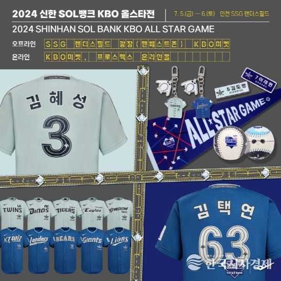 한국시사경제 스포츠팀 | KBO는 올스타전 유니폼 후원사인 프로-스펙스와 함께 2024 신한 SOL뱅크 KBO 올스타전 어센틱 유니폼을 출시한다. 이번에 출시하는 올스타전 유니폼은 KBO 드림 올스타(KT, SSG, 두산, 롯데, 삼성)와 나눔 올스타(LG, NC, KIA, 한화, 키움)의 10개 구단 로고를 드림과 나눔의 팀 컬러로 적용하여 제작했다. 올스타 출전 선수들은 각 구단별 올스타 유니폼을 착용하고 올스타전 경기에 출전할 예정이다.