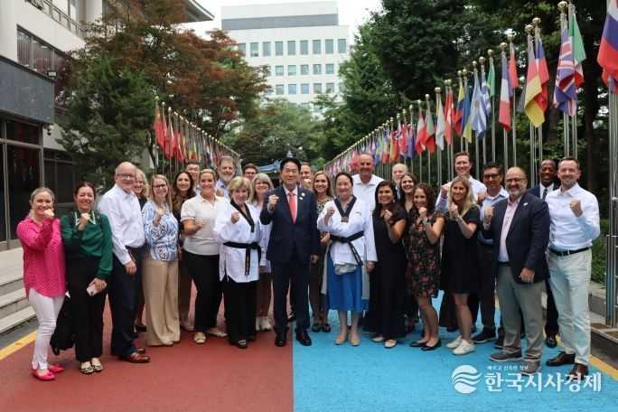 한국시사경제 스포츠팀 | 미국 텍사스주 방한단이 국기원을 방문해 태권도의 진수를 느꼈다.