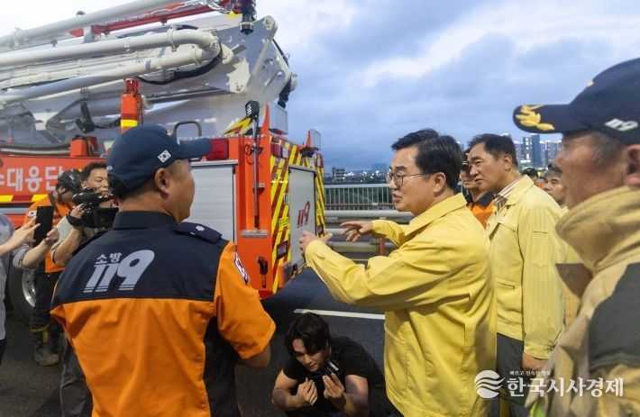 한국시사경제 이정이 기자 | 김동연 경기도지사는 오늘(18일) 저녁 집중호우로 침수된 경기 평택 세교동 세교 지하차도를 찾아 복구 현황을 살펴보고 관계자들을 격려했다.