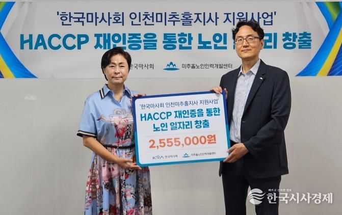 한국시사경제 경제팀 | 인천 미추홀노인인력개발센터는 한국마사회 미추홀지사에서 실시한 기부금 지원사업에서 ‘쿠키지 식품안전관리인증기준(HACCP, Hazard Analysis and Critical Control Point) 시설 기능보강개선’이 선정됨에 따라 기부금 2,555,000원을 받아 전달식을 진행했다고 19일 밝혔다.