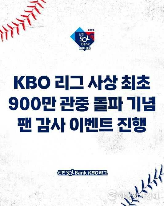 KBO와 10개 구단은 KBO 리그 역사상 최초로 900만 관중을 돌파한 것을 기념하여, 무더위 속에서도 뜨거운 열정과 응원을 아낌없이 보내준 팬들의 성원에 감사함을 전하기 위한 이벤트를 진행한다.