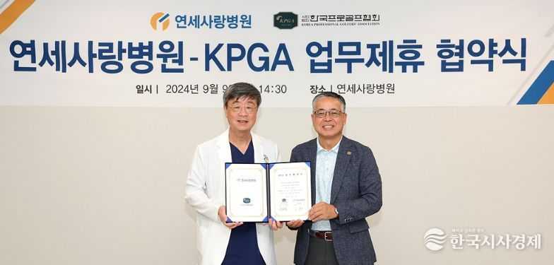 한국시사경제 스포츠팀 | (사)한국프로골프협회(회장 김원섭, 이하 KPGA)와 연세사랑병원(병원장 고용곤)과 업무 제휴 협약을 체결했다.
