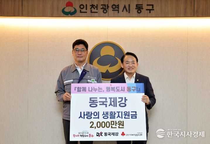 한국시사경제 경제팀 | 인천 동구에 소재한 동국제강이 지난 12일 추석 명절을 앞두고 관내 어르신들을 위한 사랑의 생활지원금(2천만원) 전달식을 가졌다고 밝혔다.