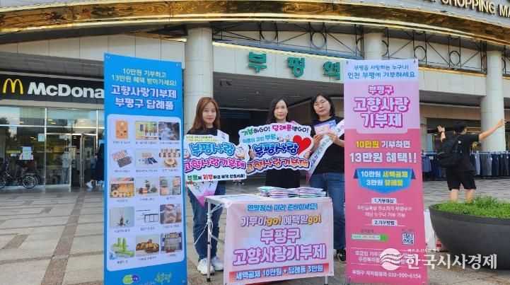 구는 이날 유동 인구가 많은 부평역사 앞에서 캠페인을 진행하며 주민들에게 고향사랑기부제를 설명했다.