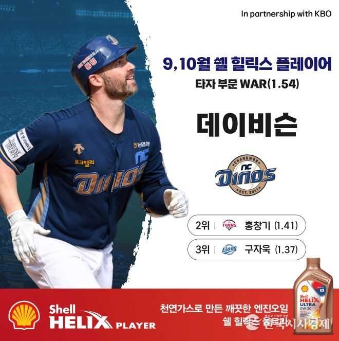 한국시사경제 스포츠팀 | KBO와 한국쉘석유주식회사(이하 ‘한국쉘’)가 함께 시상하는 ‘쉘힐릭스플레이어’의 2024 KBO 리그 9-10월 수상자로 SSG 엘리아스와 NC 데이비슨이 각각 선정됐다.