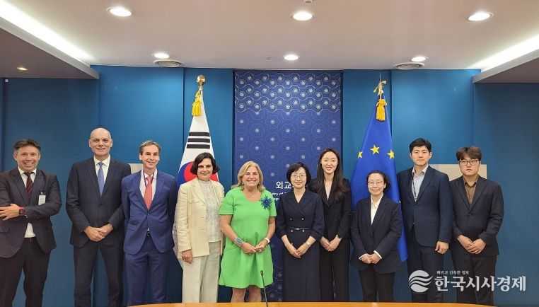한국시사경제 해외팀 | 한민영 외교부 기후환경과학외교국장은 파올라 팜팔로니(Paola Pampaloni) 유럽대외관계청(EEAS) 아시아·태평양 부실장과 2024년 10월 10일 '제6차 한-EU 에너지·환경·기후변화 작업반 회의'를 공동으로 주재했다. 외교부에서 개최된 동 회의에서 양측은 에너지, 환경, 기후변화 관련 정책을 교류하고, 한-EU 그린파트너십 이행 등을 포함한 협력 확대 방안을 논의했다.
