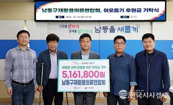 성금은 남동구 재활용의류연합회의 헌옷 수거함 사업 수익금을 모아 마련되었으며, 장애인 교육문화협회 인천시회로 전달되어 정보 취약계층인 장애인을 대상으로 한 디지털 정보화 교육에 지원될 예정이다.