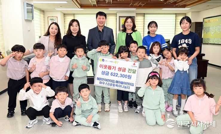 이번 성금은 지난 달 27일 '군인 가족의 날'을 맞이해 하우스디 아파트 광장에서 해맑은어린이집·해아뜰어린이집·하우스디 공동육아나눔터가 공동으로 추진한 ‘가족 품은 축제’를 통해 마련됐다.