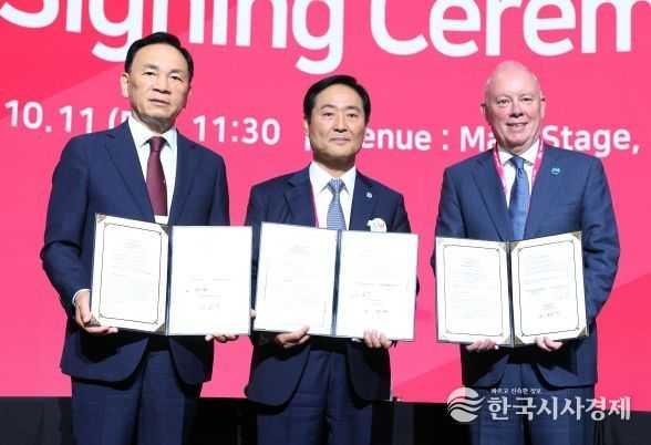 한국시사경제 경제팀 | 꿈이 모이는 도시, 미래를 그리는 강남구가 11일 코엑스 전시장 B2홀에서 서울디지털재단, 런던 템즈 프리포트와 함께 글로벌 도시 간 스마트도시 솔루션 교차실증 사업을 위한 3자 업무협약을 체결했다.