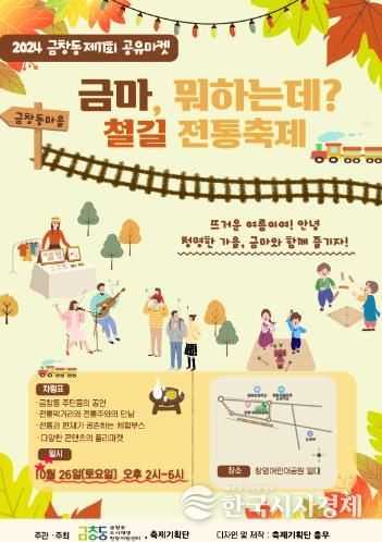 한국시사경제 경제팀 | 인천 동구와 금창동 도시재생현장지원센터는 금창동 제11회 공유마켓 ‘금마, 뭐하는데? 철길 전통축제’를 오는 26일 창영어린이공원 일원에서 개최한다고 밝혔다.
