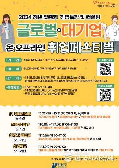 한국시사경제 경제팀 | 꿈이 모이는 도시, 미래를 그리는 강남구가 청년 구직자의 취업 역량 강화를 위한 ‘글로벌·대기업 온·오프라인 취업 페스티벌’을 10월 22일부터 11월 13일까지 개최한다.