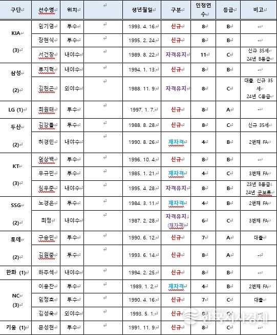 한편, 5일 공시된 2025 FA 승인 선수는 11월 6일(수)부터 해외 구단을 포함한 모든 구단과 계약을 체결할 수 있다.