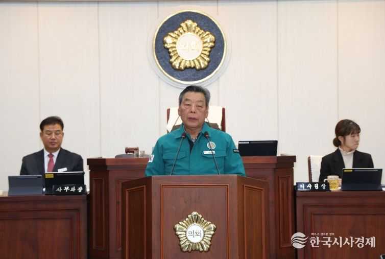 가세로 태안군수가 25일 태안군의회 본회의장에서 열린 ‘제308회 태안군의회 제2차 정례회’에서 시정연설을 통해 지역경제 활성화와 신 사업 발굴 등 내년도 각오를 밝혔다.