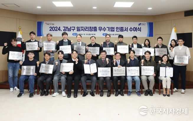 한국시사경제 경제팀 | 꿈이 모이는 도시, 미래를 그리는 강남구가 관내 일자리 창출에 기여한 우수기업 20개사를 선정하고 23일 인증서와 현판을 수여했다.