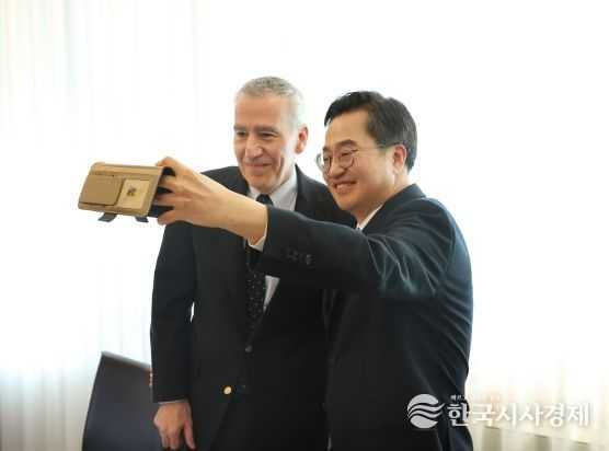 한국시사경제 이정이 기자 | 김동연 경기도지사가 24일 필립 골드버그(Philip Goldberg) 주한 미국대사와 만나 한국에 대한 흔들림 없는 신뢰와 지지에 감사함을 전달했다. 두 사람은 한국-미국 간 흔들리지 않는 협력관계를 이어나갈 것임을 재확인했다.