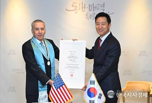 한국시사경제 해외팀 | 오세훈 서울시장은 26일 11시 집무실에서 필립 골드버그(Philip S. Goldberg) 주한 미국대사를 만나 한미 관계 발전에 기여한 공로에 대한 감사를 전하고, 명예시민증을 수여했다.