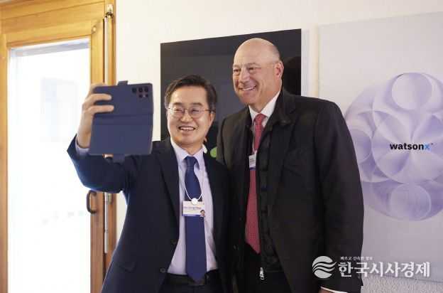 김동연 지사는 현지시간 22일 오후 다보스에 위치한 IBM 회의실에서 게리 콘 IBM 부회장(Gary D. Cohn, Vice Chairman of IBM), 크리스티나 몽고메리 부사장(Chritina Montgomery, Vice President) 등과 만나 인공지능(AI)분야에 대한 협력방안을 논의했다. 게리 콘 IBM 부회장은 트럼프 1기 행정부 백악관 국가경제위원회 위원장을 지낸 인물이다.