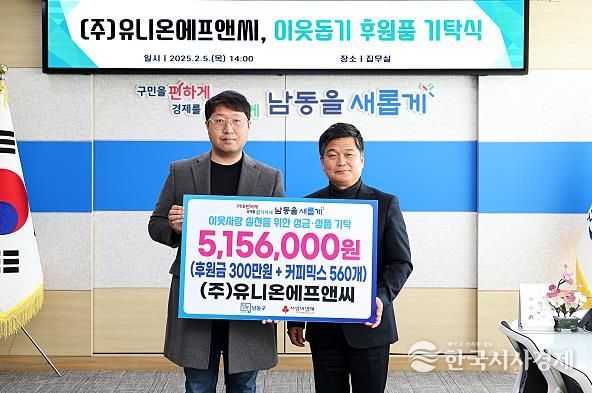 한국시사경제 경제팀 | 인천시 남동구는 유니온에프앤씨로부터 515만 원 상당의 이웃돕기 후원금과 생산품을 기탁받았다고 6일 전했다.