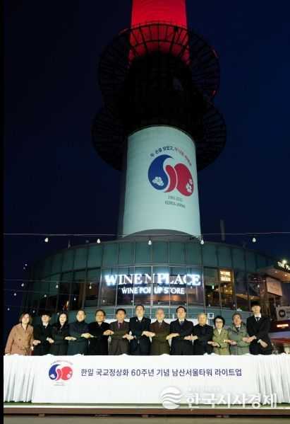 2월 15일 점등을 개시한 남산서울타워의 상단부에는 한일 양국의 국기를 형상화하는 색상인 적색과 청색이 교차 점등됐으며, 하단부에는 대국민 공모를 통해 선정된 60주년 공식 로고 이미지가 지속 투사되어 눈길을 끌었다. 한편, 같은 날 일본 외무성도 60주년을 함께 축하하는 분위기를 조성하기 위해 도쿄타워에 적색‧청색의 조명과 함께 “JAPAN-KOREA”라는 문구를 점등했다.