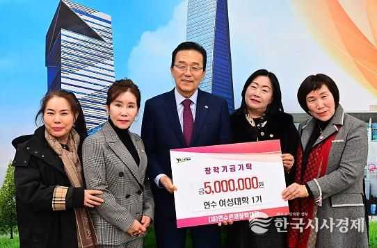 한편, 지난해 말 연수구 민간어린이집 연합회의 2백만 원을 시작으로, 연수 여성대학 1기 임원진과 회원 5명이 1백만 원씩 총 5백만 원을 전달하는 등 지역 교육 발전을 위한 기부에 동참했다.