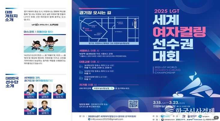 한국시사경제 스포츠팀 | ‘2025 엘지티(LGT) 세계여자컬링선수권대회’가 3월 15일(토)부터 23일(일)까지 의정부실내빙상장에서 열린다. 이번 대회에서는 13개국 선수 100여 명이 참가해 여자 단체전 종목으로 실력을 겨룬다. 문화체육관광부 유인촌 장관은 3월 15일, 경기장을 찾아 성공적인 대회 개최를 축하하고 한국·일본전 예선경기 현장을 찾아 선수들을 격려한다.
