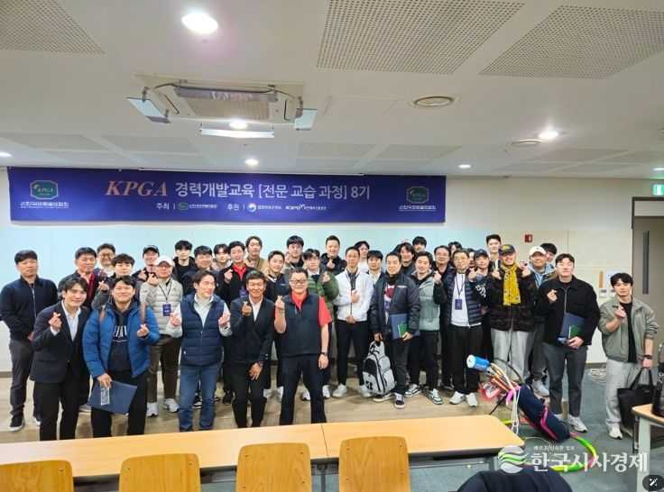 한국시사경제 스포츠팀 | (사)한국프로골프협회(회장 김원섭, 이하 KPGA)의 KPGA 경력개발교육 ‘전문교습과정 8기’ 입학식이 지난주 KPGA 김주연 기술교육위원장을 포함한 여러 KPGA 회원들이 참석한 가운데 경기 화성 소재 YBM 연수원에서 열렸다.