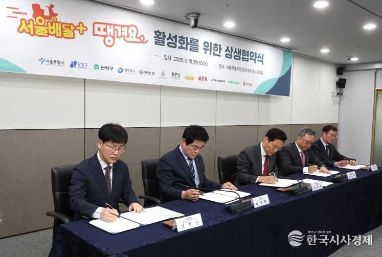 한국시사경제 경제팀 | 꿈이 모이는 도시, 미래를 그리는 강남구(구청장 조성명)가 서울배달플러스 땡겨요 활성화를 위한 시범자치구로 선정돼 18일 관계기관과 협약을 맺고 관내 소상공인 매출 활성화를 위한 홍보활동에 박차를 가한다.