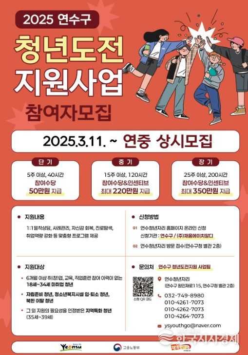 한국시사경제 경제팀 | 연수구가 장기 미취업 청년들의 자신감 회복과 취업역량 강화를 위해 ‘2025년 청년도전지원사업’을 시작한다.