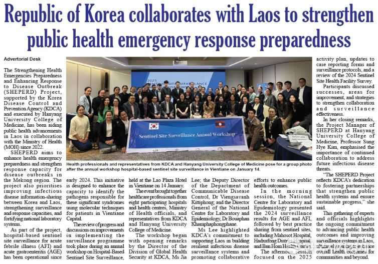 라오스 공중보건 위기대응 역량강화 ODA 사업은 2022년 시작한 총 5개년 사업으로, 한양대학교 산학협력단(책임연구자: 김성혜 교수)과의 협력을 통해 그간 우돔싸이 지역 내 실험실 준공, 혈청학 진단검사법 교육, 감염병 감시 체계 구축을 위한 워크숍, 각종 기술 지원 등 현지 수요에 기반한 다양한 역량강화 프로그램을 수행하여, 현지에서도 긍정적인 평가를 받았다.