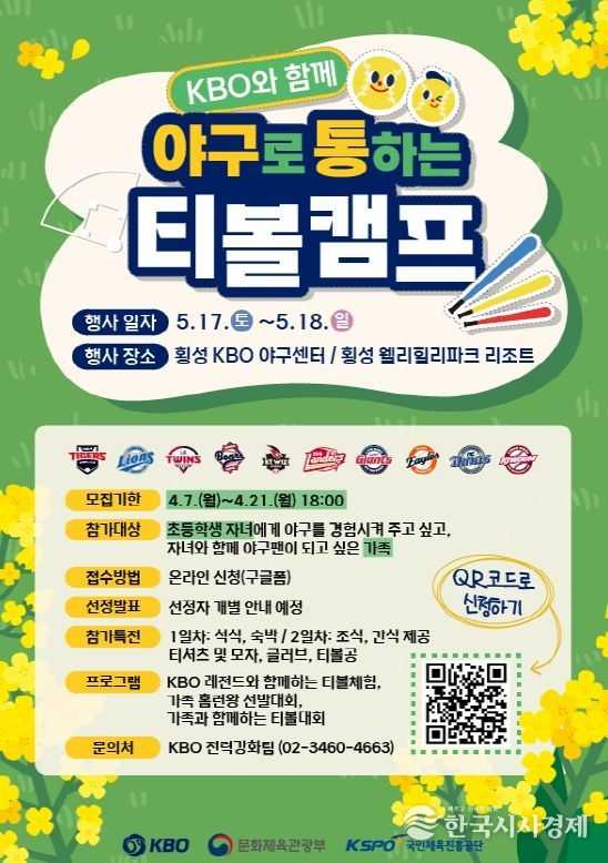 한국시사경제 스포츠팀 | KBO가 ‘2025년 야구로 통하는 티볼캠프’에 참가할 가족을 모집한다.