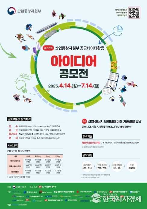 한국시사경제 김숙영 기자 | 산업통상자원부는 한국전력 등 공공기관과 함께 4월 14일∼7월 14일까지'제13회 공공데이터 활용 아이디어 공모전'을 개최한다.