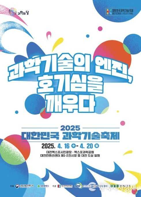 한국시사경제 김숙영 기자 | 과학기술정보통신부와 대전광역시가 주최하고 한국과학창의재단(이사장 정우성), 한국연구재단(이사장 홍원화), 대전관광공사(사장 윤성국), 과학문화민간협의회(회장 이명현)가 주관하는「2025 대한민국 과학기술축제(29회)」가 4월 16일부터 20일까지 5일간 대전 엑스포시민광장과 엑스포과학공원, 대전컨벤션센터 제1·2전시장 등 대전 도심 일대에서 열린다.