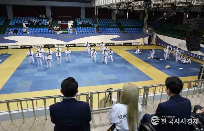 마지막으로 중앙수련장에서 국기원 태권도시범단이 환영의 뜻을 담아 준비한 시범공연을 약 15분간 선보였다.