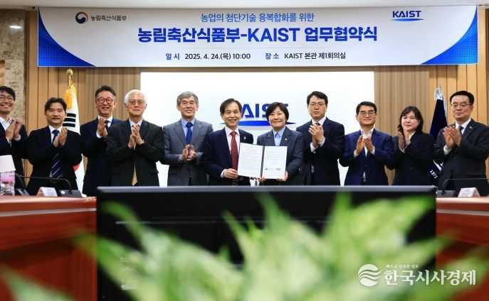 한국시사경제 김숙영 기자 | 농림축산식품부는 과학기술특성화대학인 한국과학기술원(KAIST, 총장 이광형)와 협력하여 AI, 첨단바이오 등 농업부문 기술혁신을 선도하고 미래농업을 이끌 융합형 인재 양성, 기술창업 활성화를 위해 4월 24일 업무협약을 체결했다.