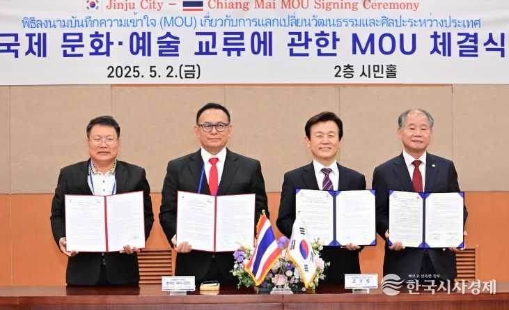 한국시사경제 해외팀 | 진주시는 2일 태국 치앙마이주 국제교류단과 지역 축제 협력 강화를 위한 국제 문화·예술 교류에 관한 양해각서(MOU)를 체결했다고 밝혔다.