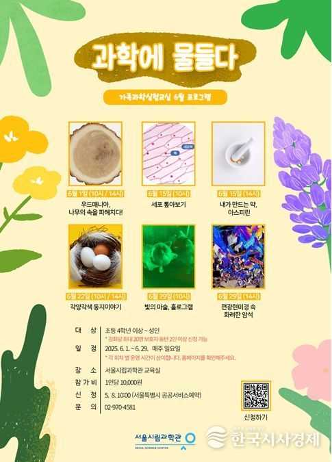 과학에 물들다는 초등학생 4학년 이상 가족을 대상으로 ‘서울시 공공서비스예약’ 시스템을 통해 예약 후 참여할 수 있다.