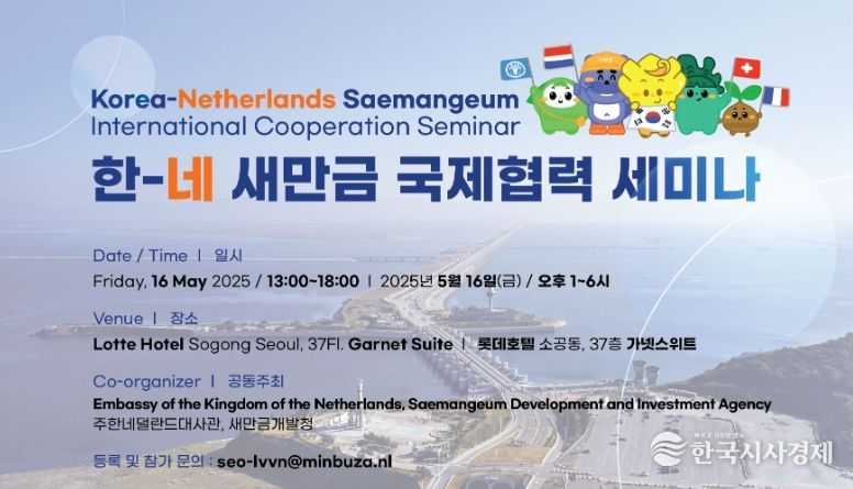 한국시사경제 해외팀 | 새만금개발청은 주한네덜란드대사관(대사 페이터 반 더 플리트)와 5월 16일 롯데호텔 서울(소공동 소재) 37층에서 ‘한·네 새만금 국제협력 세미나’를 공동 개최한다고 밝혔다.