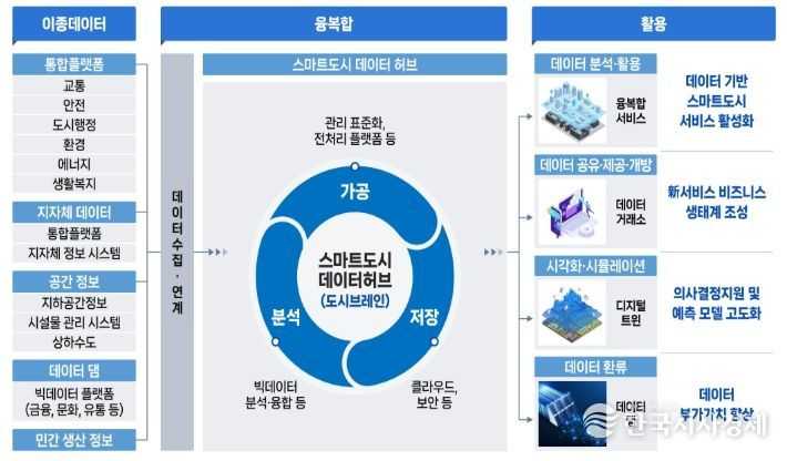 ‘스마트도시 데이터허브’ 는 교통 ‧ 안전 등 다양한 도시데이터를 한 곳에모아놓은 도시정보 플랫폼으로, 데이터허브에 모인 데이터를 연계‧분석하여 새로운 도시서비스를 만들 수 있고 지방자치단체가 도시를 효율적으로 운영할 수 있도록 돕는 역할을 한다.