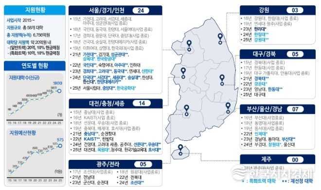 과기정통부는 올해 10개 대학(일반분야 8개, 특화분야 2개)을 선정하고 일반분야(트랙) 대학에는 연 20억 원, 특화 분야(트랙)에는 연 10억 원을 지원할 예정이다.