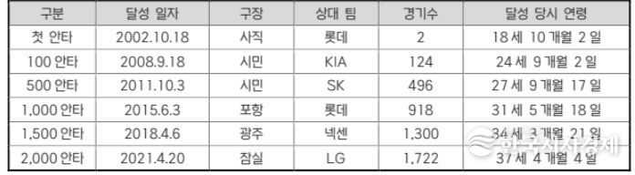 최형우는 KBO 리그에서 본격적으로 활약하기 시작한 2008시즌 이후 지난시즌까지 단 한 시즌을 제외하고 모두 100안타 이상을 기록했으며, 이 기간 시즌 당 평균 약 144개의 안타를 쳐내는 꾸준함을 자랑했다. 이번 시즌에도 100안타 이상을 기록할 시 총 17시즌 세 자리 수 안타를 달성하게 된다.