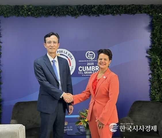 한국시사경제 해외팀 | 카리브국가연합(ACS) 제10차 정상회의 및 제30차 각료회의 참석차 콜롬비아 카르타헤나를 방문한 김진해 카리브공동체(CARICOM) 정부대표는 5월 28일 노에미 에스피노자 마드리드(Noemí Espinoza Madrid) ACS 사무총장과 면담하고, ▵해양 협력 ▵기후변화 대응 ▵인적교류 등 분야에서 한-ACS 협력 강화 방안을 논의했다.