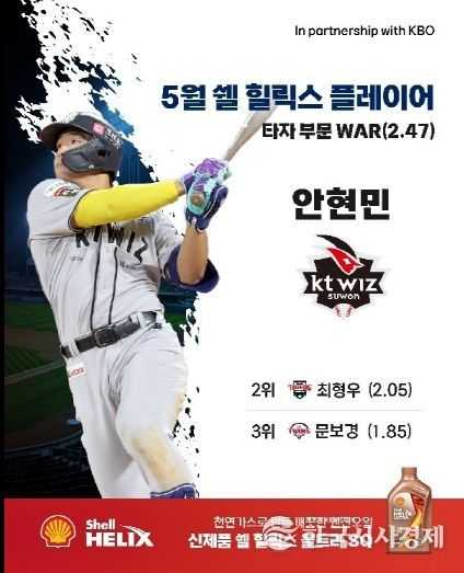 한국시사경제 스포츠팀 | KBO와 한국쉘석유주식회사가 함께 시상하는 ‘쉘힐릭스플레이어’의 2025 신한 SOL뱅크 KBO 리그 5월 수상자로 KT 안현민과 SSG 앤더슨이 선정됐다.
