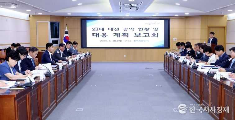 한국시사경제 김태훈 기자 | 전북특별자치도는 10일 도청 중회의실에서 김관영 지사 주재로 ‘제21대 대선 공약 대응 보고회’를 개최하고, 대선 이후 전북 공약의 이행 전략과 국정과제 반영 방안 등을 종합 점검했다고 밝혔다.