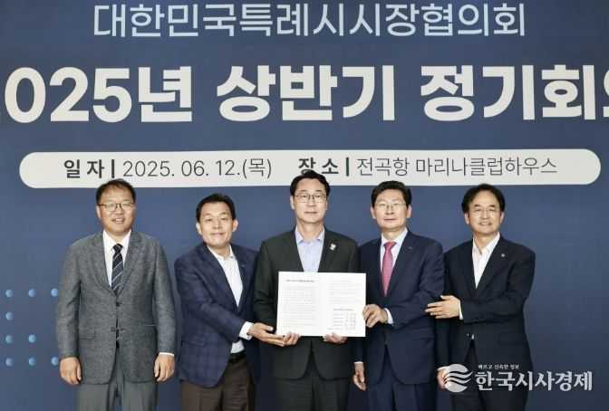 한국시사경제 기동취재팀 | 화성특례시가 12일 전곡항 마리나클럽하우스에서 열린 ‘대한민국특례시시장협의회 2025년 상반기 정기회의’에서 정명근 화성특례시장이 신임 대표회장으로 선출됐다고 밝혔다. 임기는 2026년 6월 30일까지다.