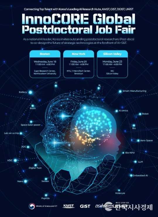 한국시사경제 김숙영 기자 | 과학기술정보통신부와 4개 과학기술원은 AI 융합 분야(AI+S&T)의 첨단전략 연구를 이끌 ‘이노코어(InnoCORE) 연구단’ 8개를 선정하고, 이를 통해 국내·외 최고 수준 박사후연구원(Postdoctoral researcher) 400명 채용을 본격화한다.