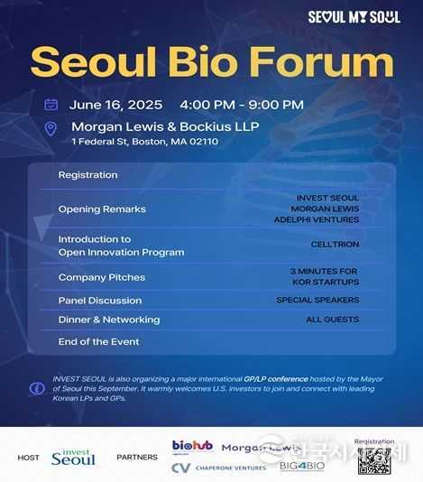 올해 행사에는 서울시 투자유치 전담조직인 ‘인베스트서울(Invest Seoul)’이 박람회 첫날인 16일 오후 4시(현지시간)에 ‘서울바이오포럼(Seoul Bio Forum 2025)’을 개최한다. 이번 포럼에는 글로벌 반도체‧AI기업 엔비디아를 비롯해 화이자, 아스트라제네카, 오비메드, 메이요 클리닉 등 글로벌 기업 및 기관 관계자 100여 명이 참석해 서울 바이오 스타트업 10개사의 IR 발표와 네트워킹에 참여한다.