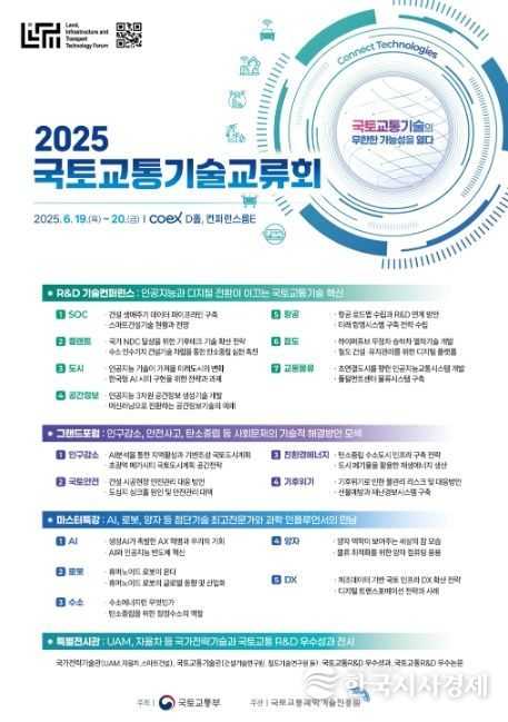 한국시사경제 김숙영 기자 | 국토교통부는 국토교통 기술의 혁신을 위해 산·학·연 각계 전문가가 모이는 2025 국토교통기술교류회를 6월 19일부터 2일간 코엑스에서 개최한다.